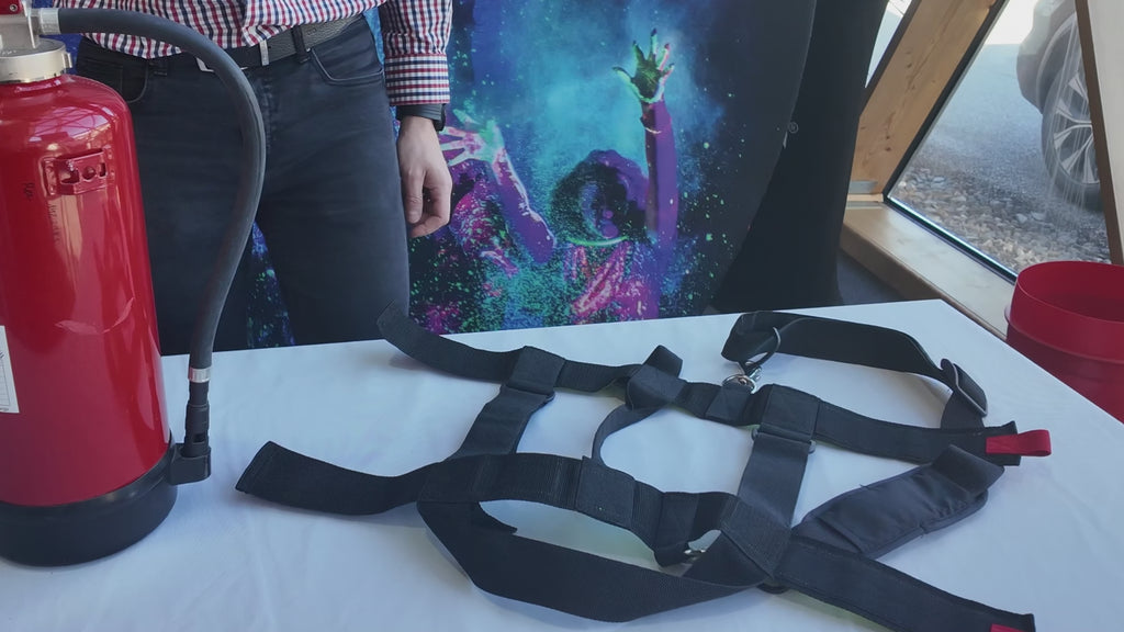 Grâce à ses sangles de portage robustes et polyvalentes, ce support s’adapte facilement à toutes les dimensions de bouteilles, comme les formats 6 litres ou 9 litres.