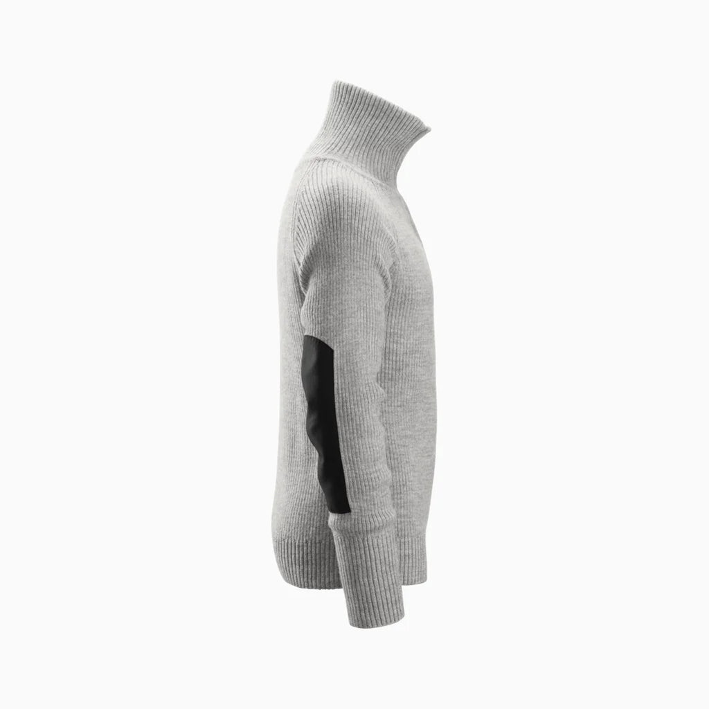 Ce confortable pull demi fermeture zippée est fabriqué en laine 100 % naturelle qui apporte chaleur, respirabilité et résistance aux odeurs. Conçu pour le travail quotidien dans des environnements froids, il fonctionne parfaitement comme seconde couche chaude. La structure en tricot côtelé assure une excellente isolation tout en permettant une grande liberté de mouvement. Les coudes renforcés offrent une durabilité accrue, et les passages de pouces maintiennent les manches en place pendant le travail actif. Il est doté d'une fermeture à glissière ton sur ton, d'une broderie ton sur ton au niveau du col et d'un badge logo de manche en cuir de pomme, une matière durable fabriquée à partir de déchets de pommes.